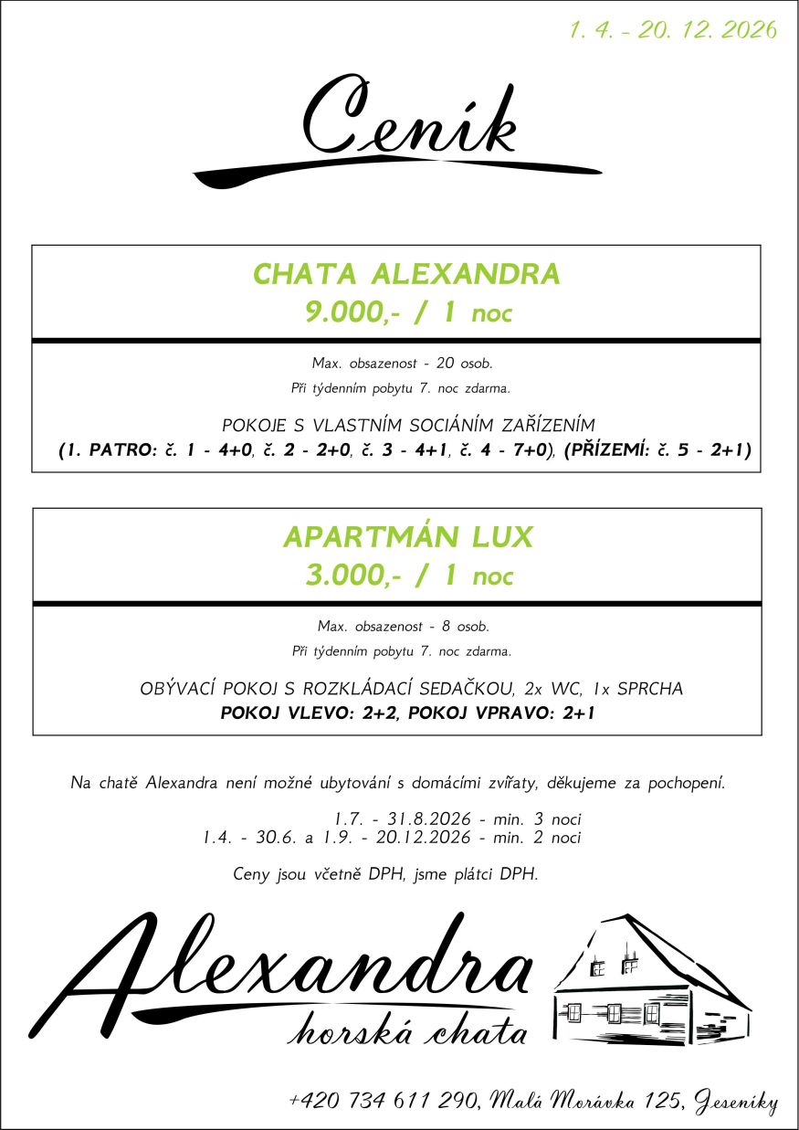 Ceník ubytování